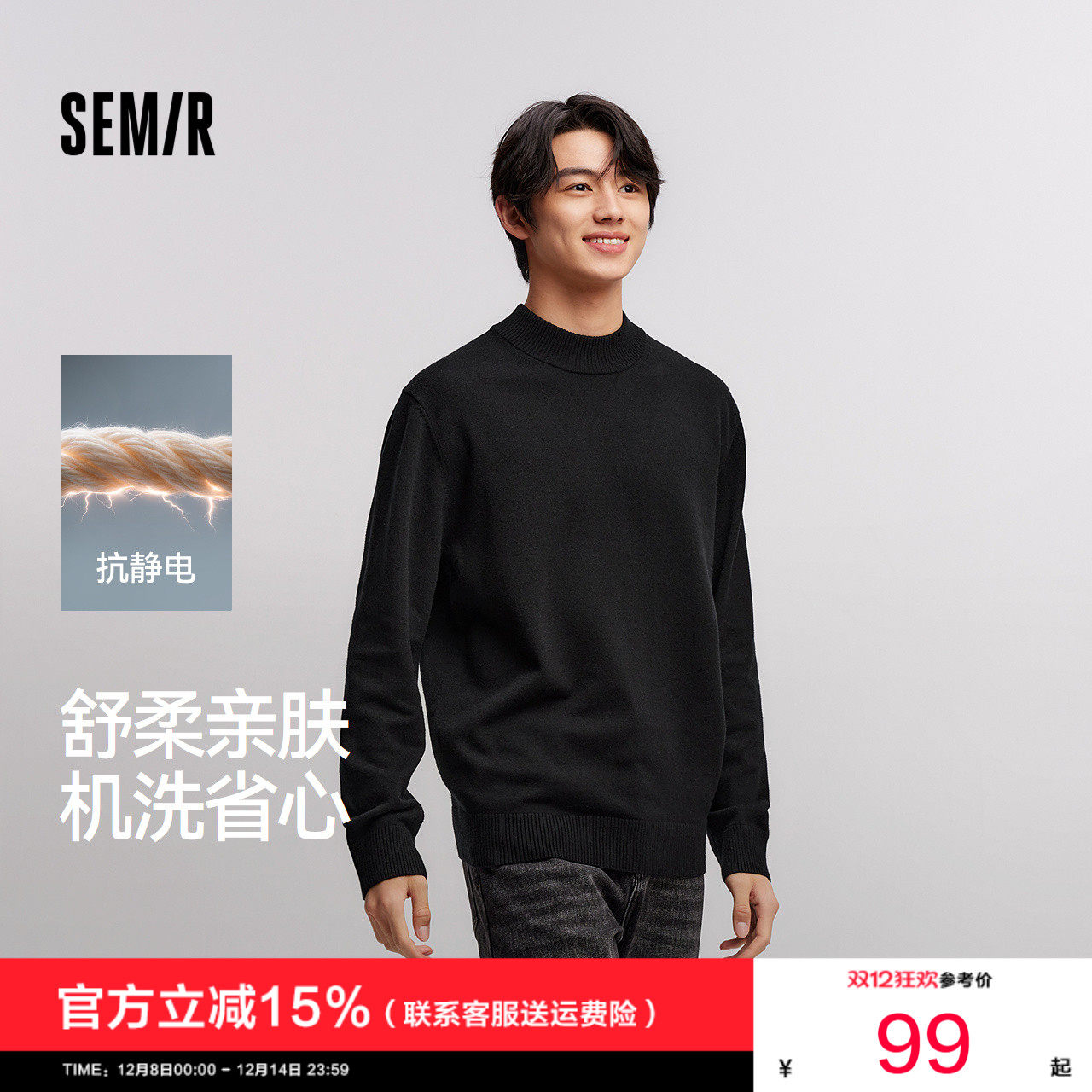 森柔|森马毛衫男冬半开襟高领针织衫...
