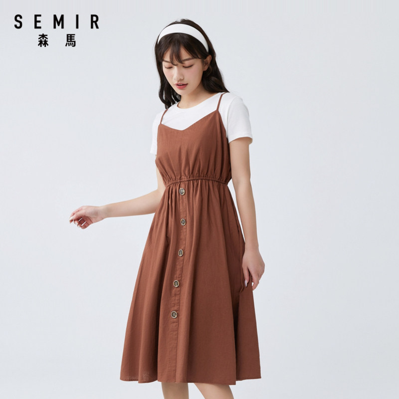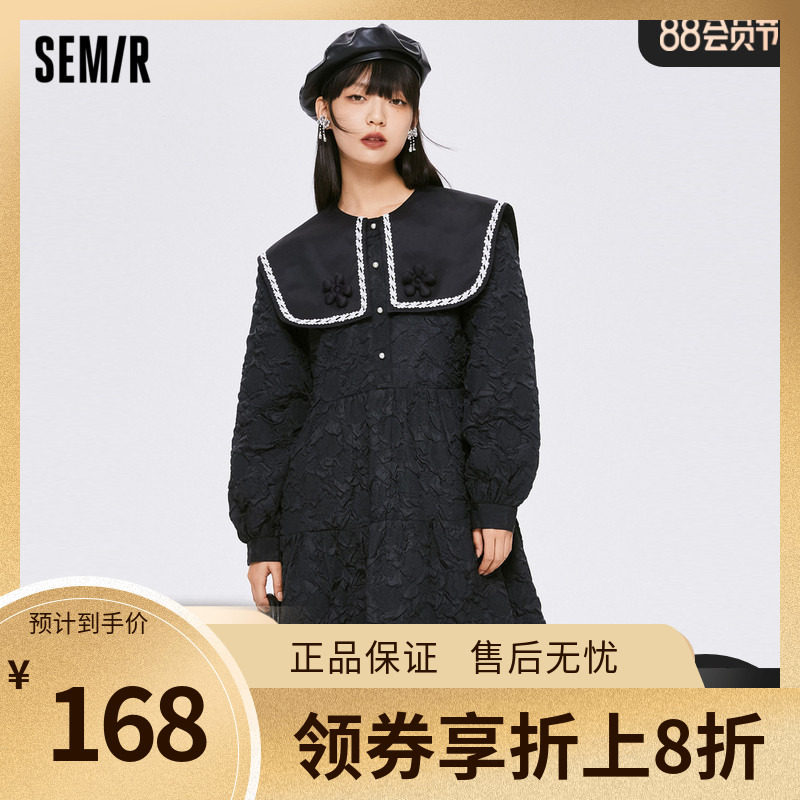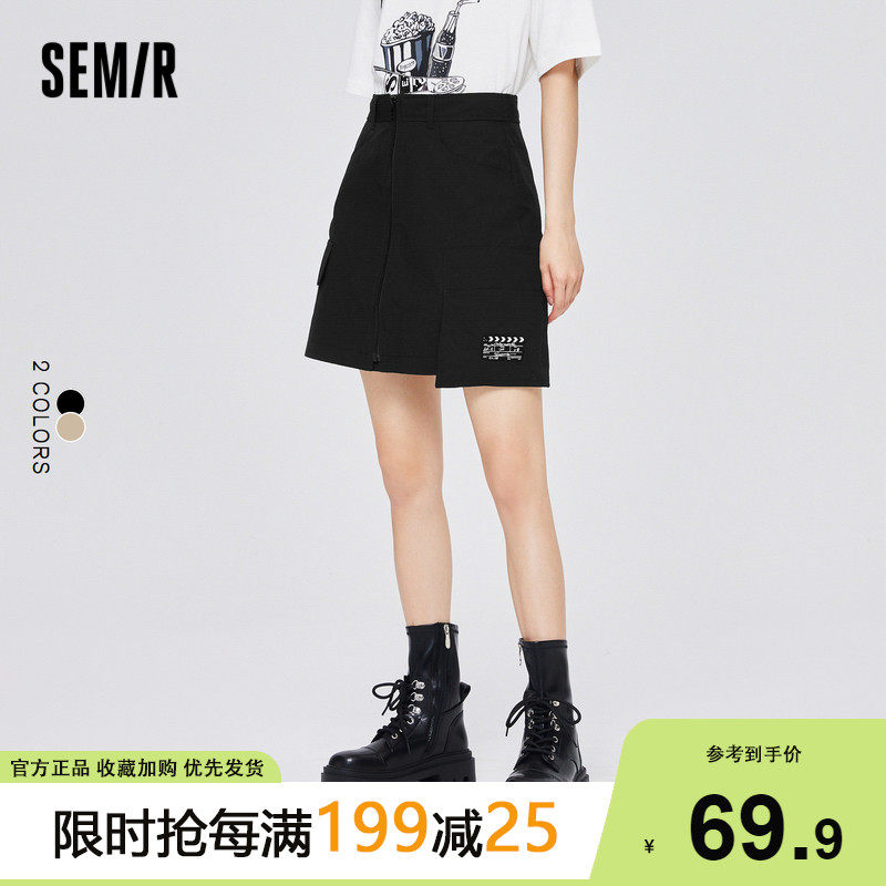 森马半身裙女冬季肌理夹棉松紧腰A字...