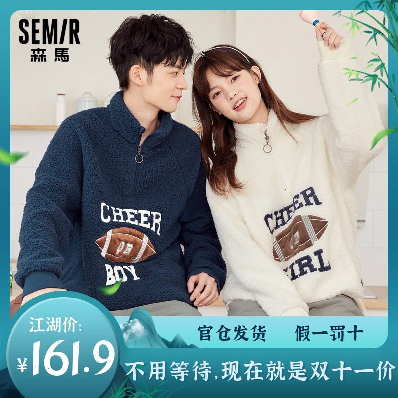 森马外套女冬季夹棉仿羊羔毛翻领ove...