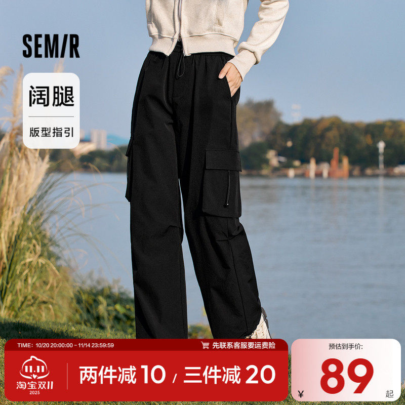 森马休闲裤女抽绳工装裤甜酷潮流简...