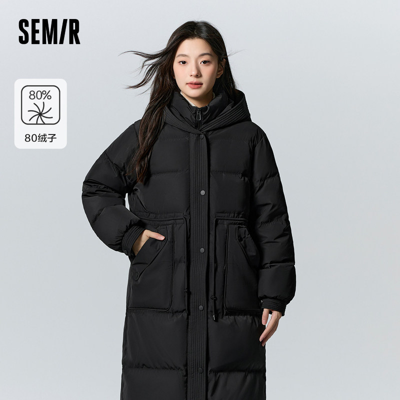 轻松|森马羽绒服女冬中长款90绒子厚...