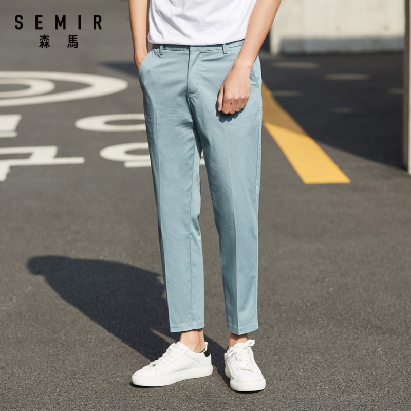 森马牛仔裤男浅蓝色个性做旧裤子202...