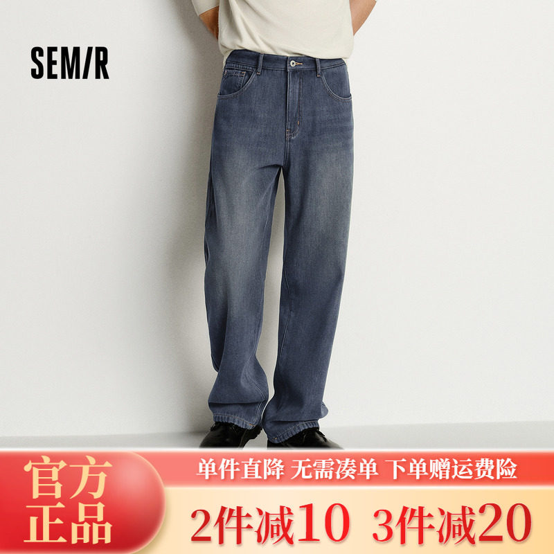 森柔牛仔|森马牛仔裤男复古水洗直筒...