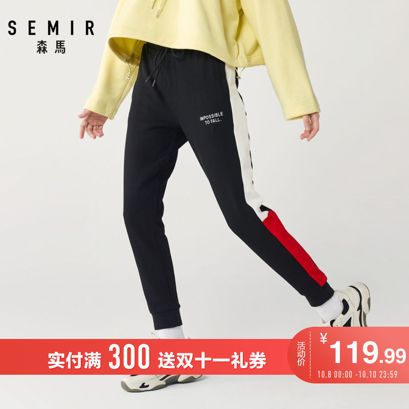 森马休闲裤女2019冬季新款撞色设计感裤子韩版潮流学生黑色运动裤