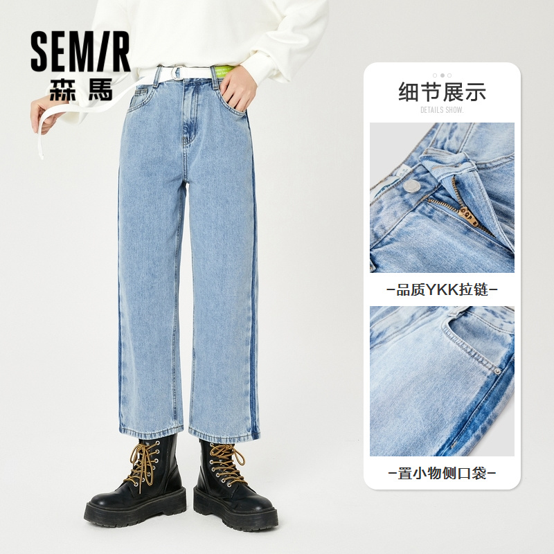 森马牛仔裤女阔腿九分裤2020秋新款裤子潮ins老爹裤宽松撞色女裤