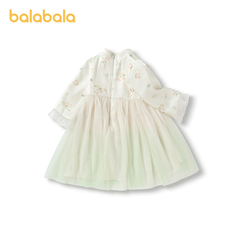 巴拉巴拉女童连衣裙新中式国风旗袍裙假两件连衣裙秋季童装网纱裙