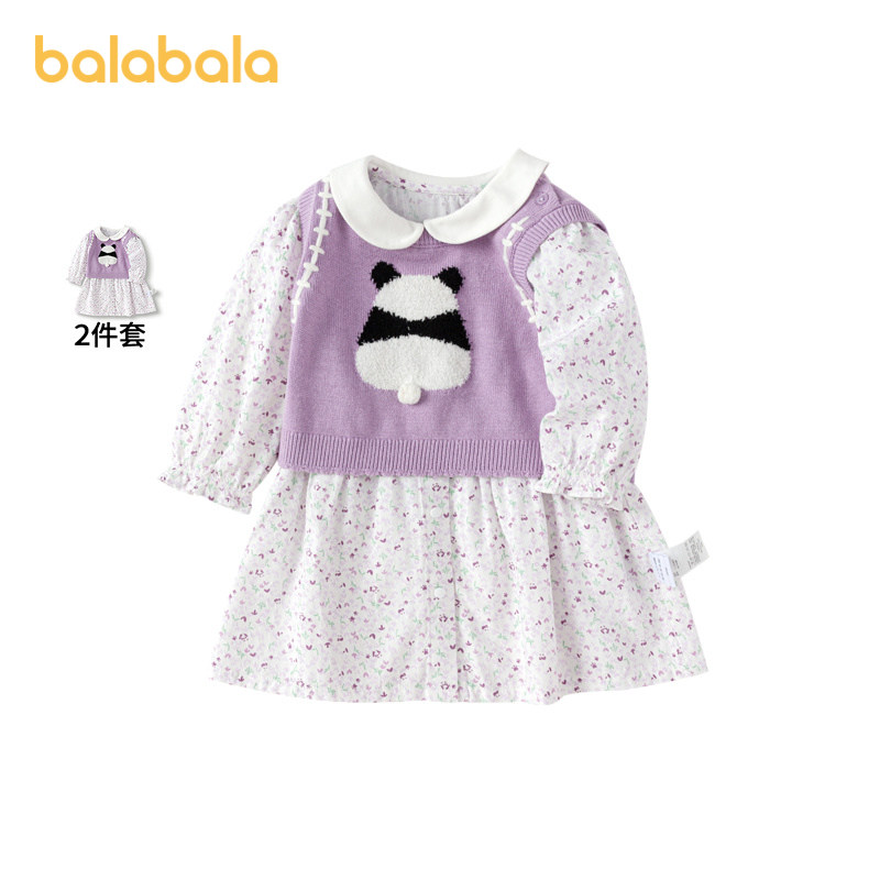 【商场同款】巴拉巴拉宝宝秋装女童长袖套装连衣裙两件套2024新款
