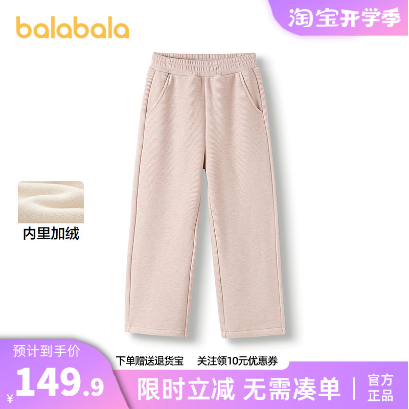 巴拉巴拉balaOne童装女童加绒直筒儿童裤子2025冬装新款保暖百搭