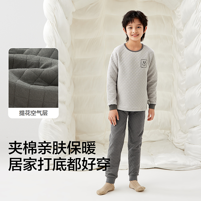 巴拉巴拉儿童保暖内衣套装冬季加厚夹棉男童舒适秋衣秋裤打底睡衣