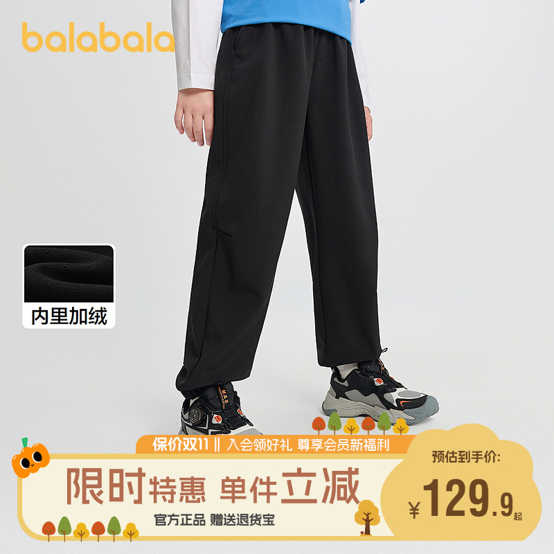 巴拉巴拉balaOne儿童长裤男童女童2025冬装新款加绒束脚裤子保暖