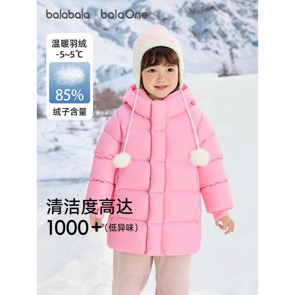 巴拉巴拉儿童羽绒服女童鹅绒加厚冬中长款男童上衣2025年新款外套