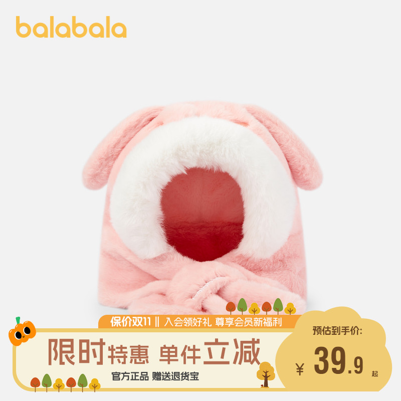 巴拉巴拉宝宝帽子围巾一体冬季男童女童加绒保暖防风护耳萌趣帽子