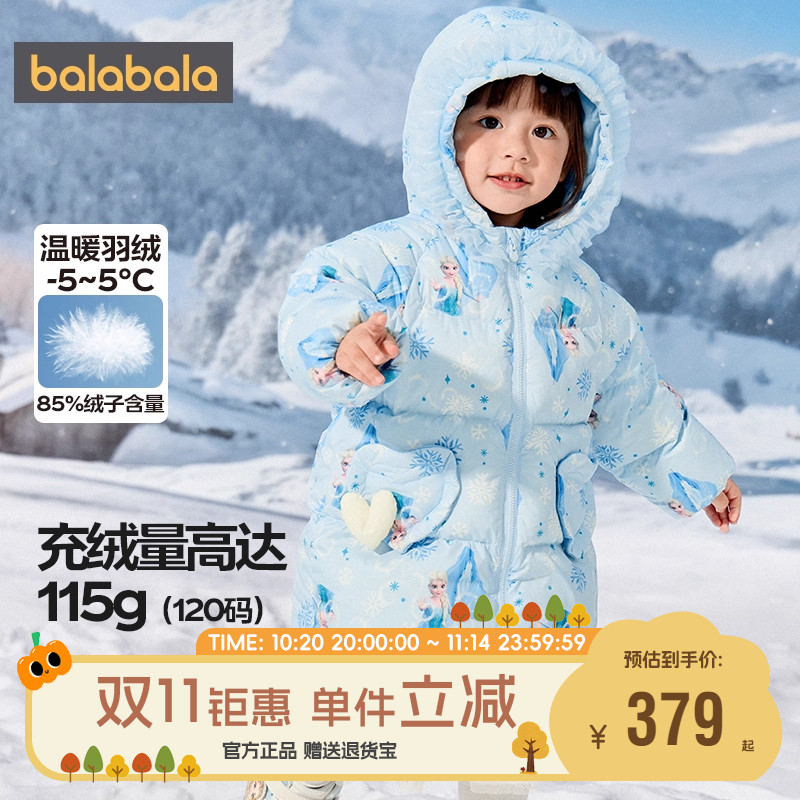 【迪士尼IP】巴拉巴拉女童羽绒服中长款艾莎公主2025新冬装连帽厚