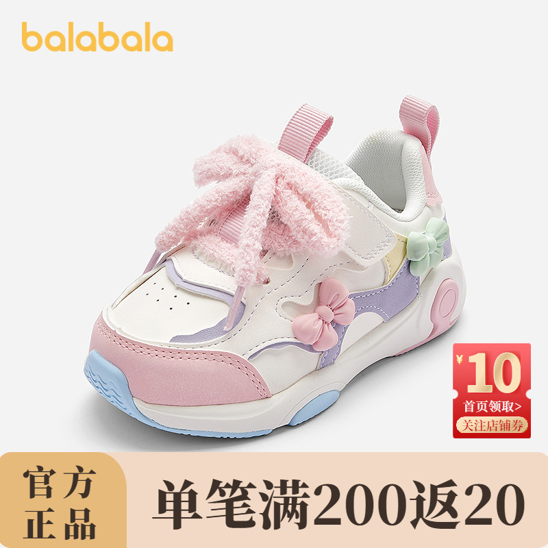 巴拉巴拉童鞋宝宝稳步鞋防滑婴儿鞋子女童秋冬板鞋蝴蝶结甜美可爱