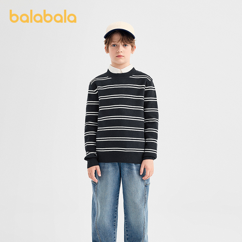 巴拉巴拉【商场同款】童装儿童毛衫男童女童2025新款冬条纹针织衫