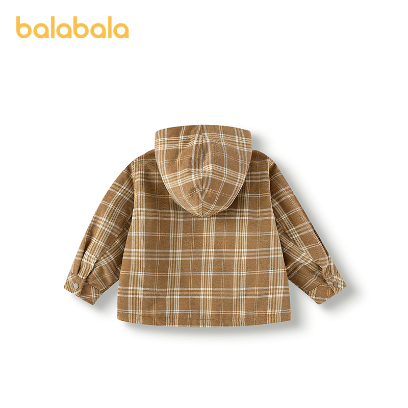【商场同款】巴拉巴拉儿童棉服宽松连帽外套格纹男童冬装2025新款
