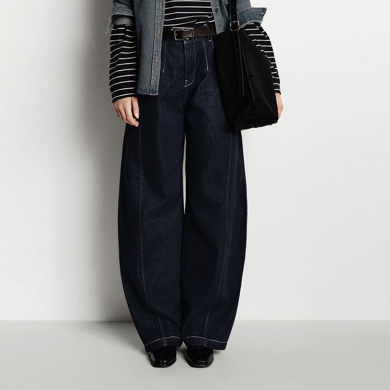 森马牛仔裤女冬季宽松分割抓毛拖地裤2025新款酷飒风显腿长弯刀裤