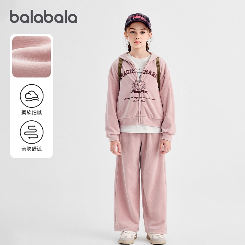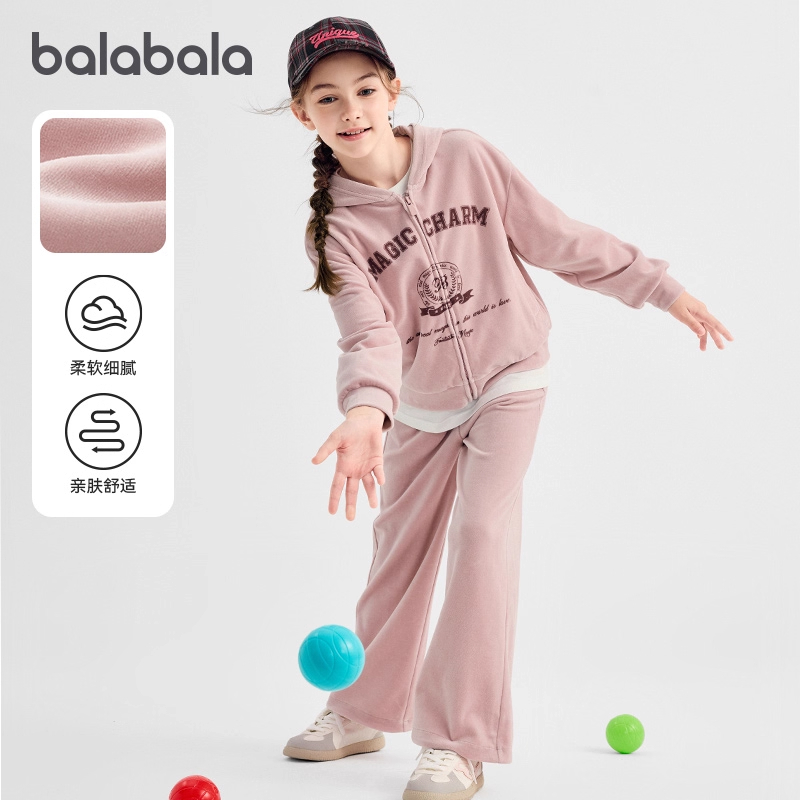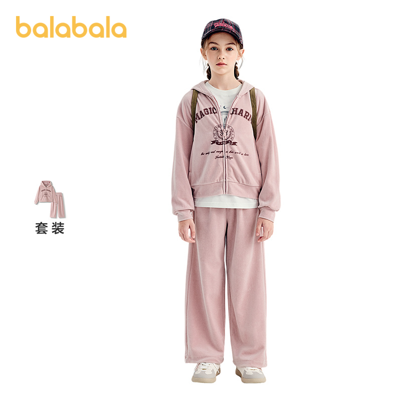 商场同款巴拉巴拉女童套装儿童天鹅绒长袖2件套2025秋装新款童装