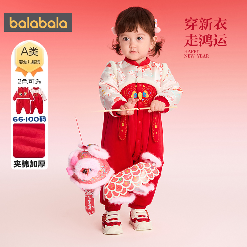 巴拉巴拉宝宝连体衣婴儿红色新年款外出衣服秋冬款童装新生儿爬服
