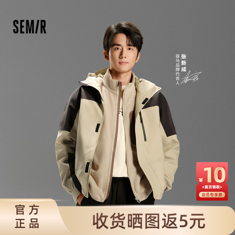 [商场同款]森马外套男2024秋季新款情侣摇粒绒抗静电上衣时尚拼接