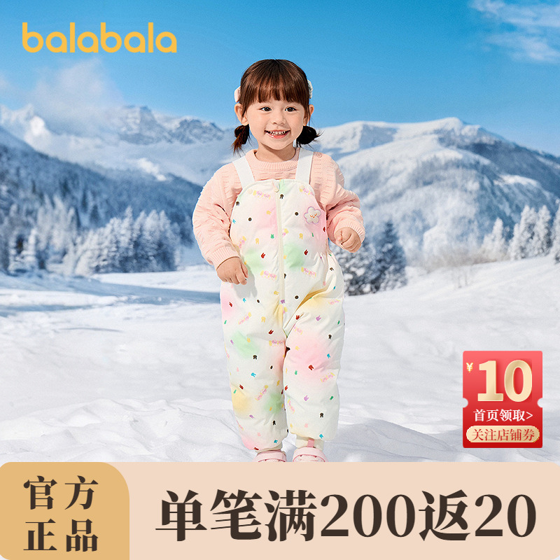 巴拉巴拉宝宝长裤女童羽绒背带裤冬装2025新保暖裤子