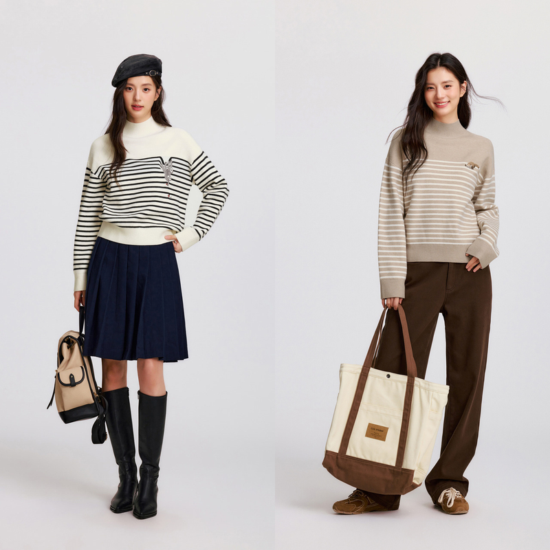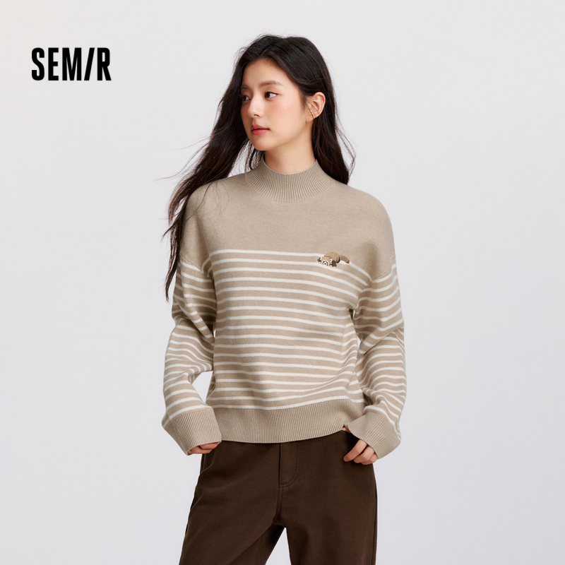 森柔毛衫|商场同款森马中国国家地理系列毛衣女2024冬新款条纹衫