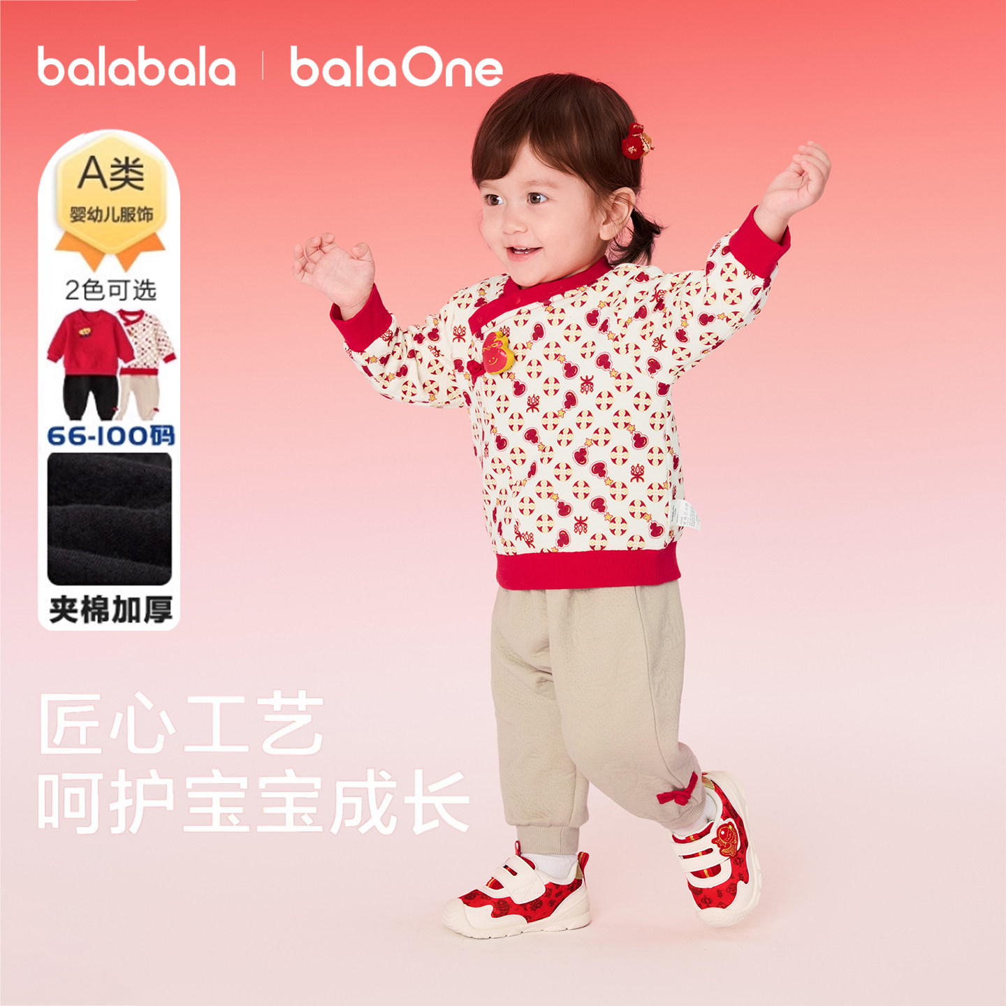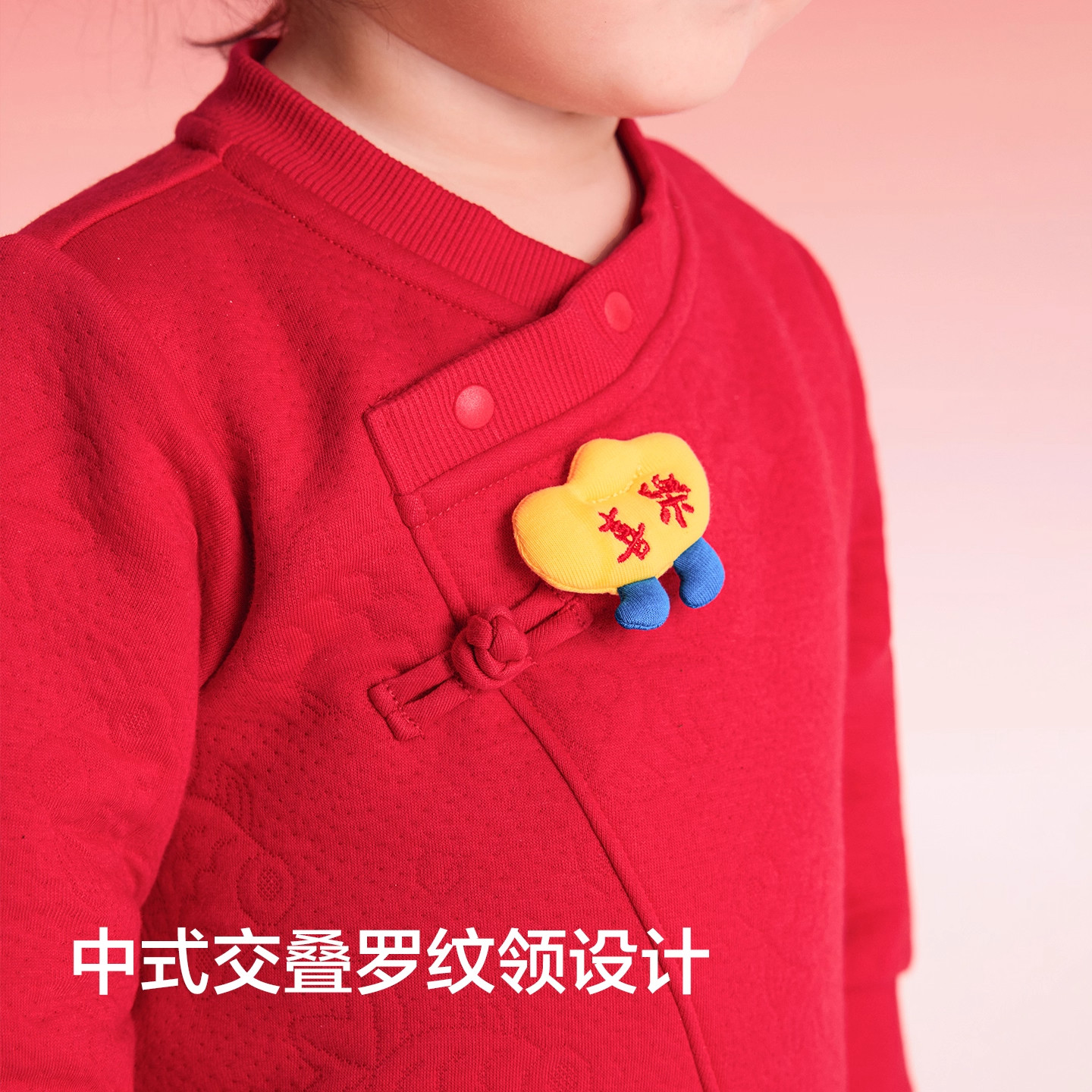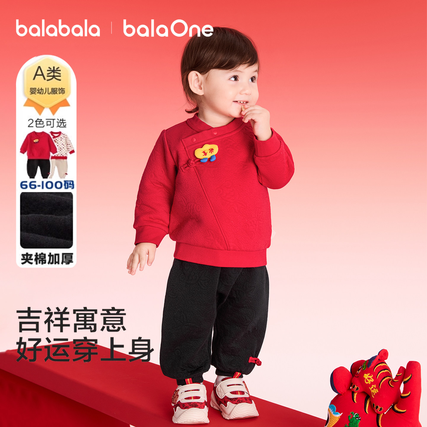 巴拉巴拉儿童套装2025年新款冬装新中式童装红色拜年服加厚两件套