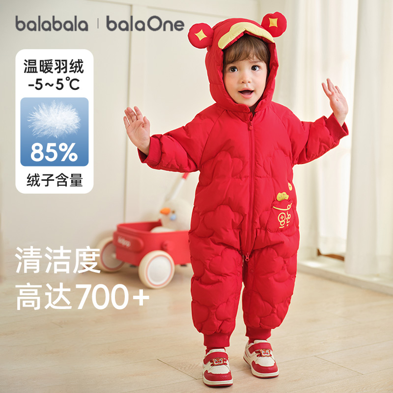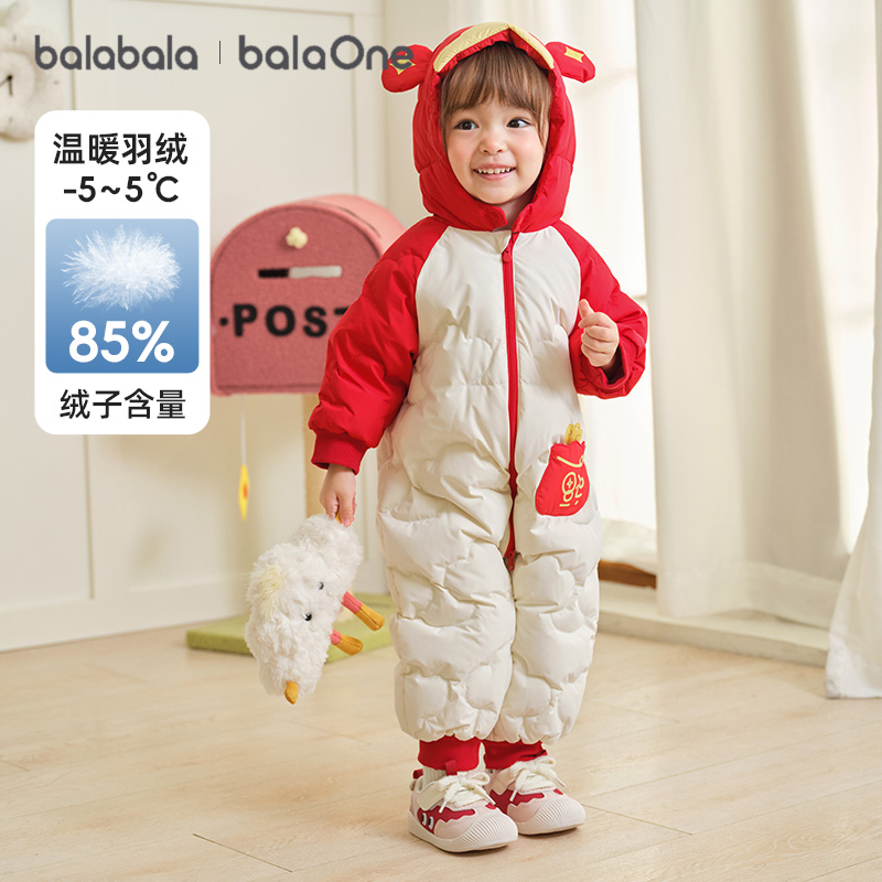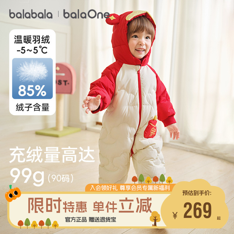巴拉巴拉婴儿连体衣轻薄羽绒服宝宝外出爬服新生儿哈衣2025冬新款