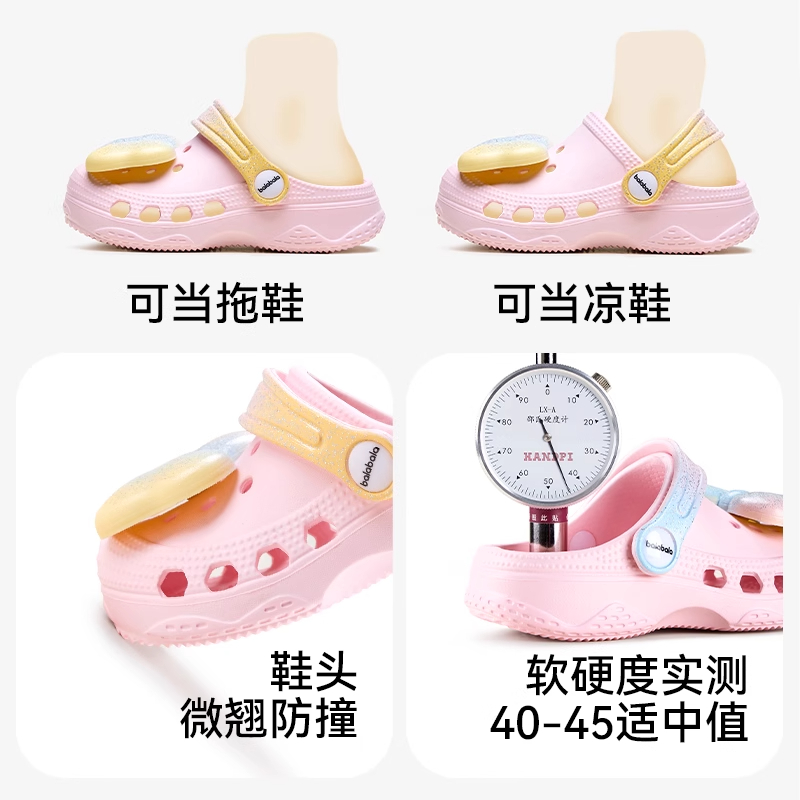 巴拉巴拉童鞋儿童洞洞鞋女童凉鞋甜美蝴蝶结拖鞋可外穿2025夏新款
