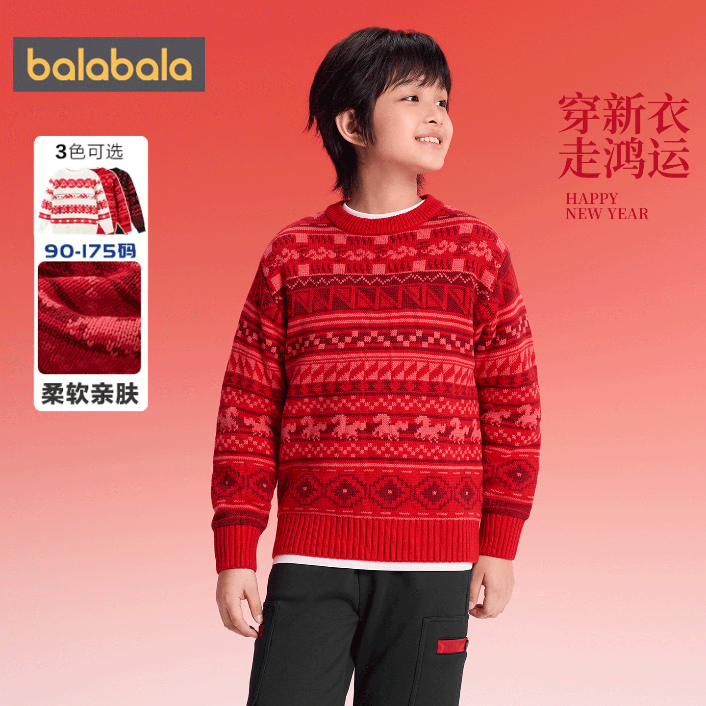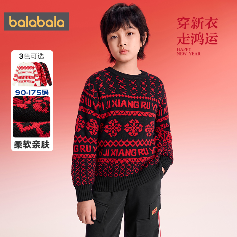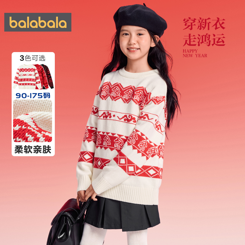 巴拉巴拉儿童毛衫女童费尔岛针织衫2025冬装新款童装大童红色毛衣