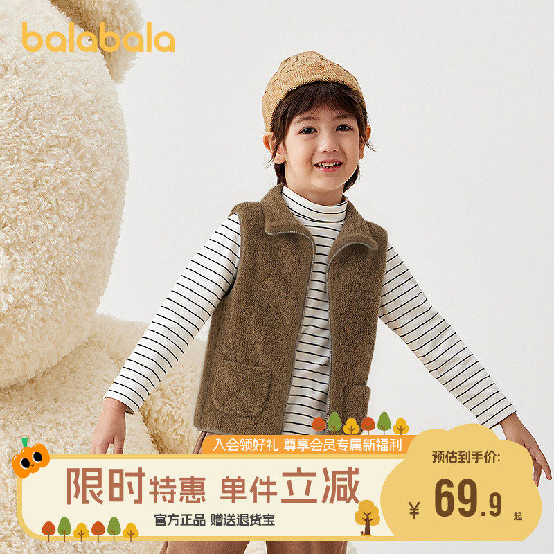 巴拉巴拉balaOne童装儿童马甲2025冬季新款珊瑚绒保暖背心男女童
