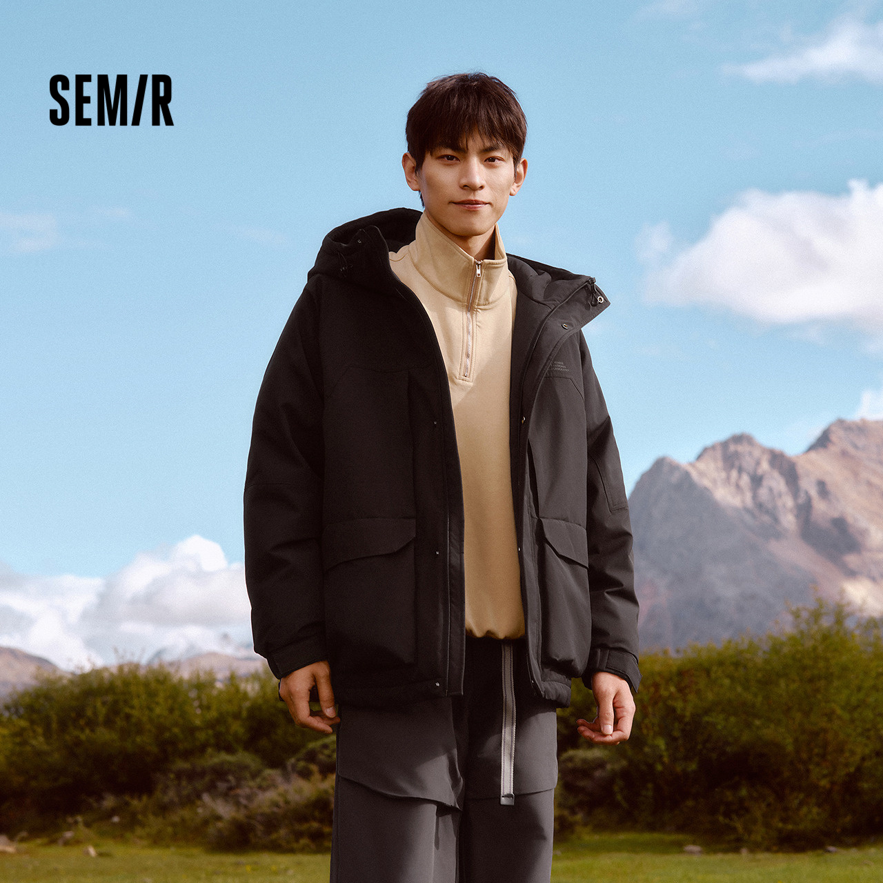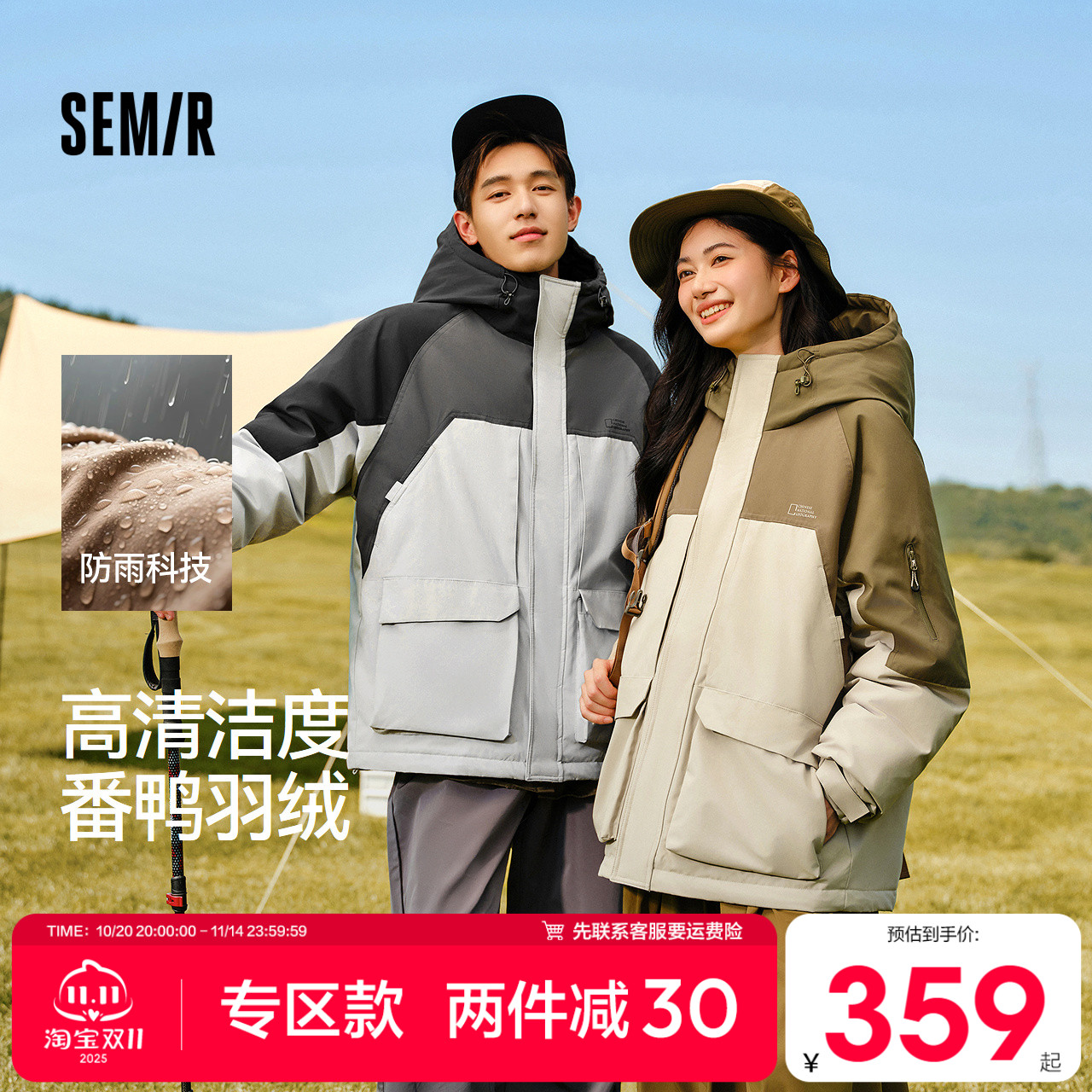 商场同款森马羽绒服外套男女冬季新款三防宽松拼接工装连帽防护服
