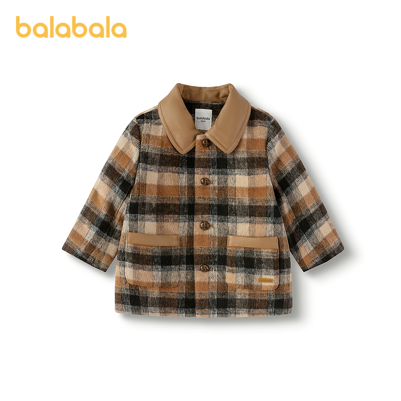 【商场同款】巴拉巴拉男童棉服格纹毛呢外套2025新款冬装复古时尚