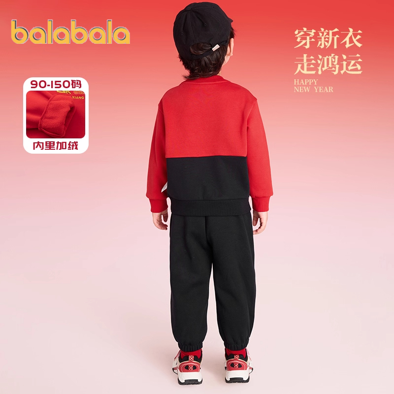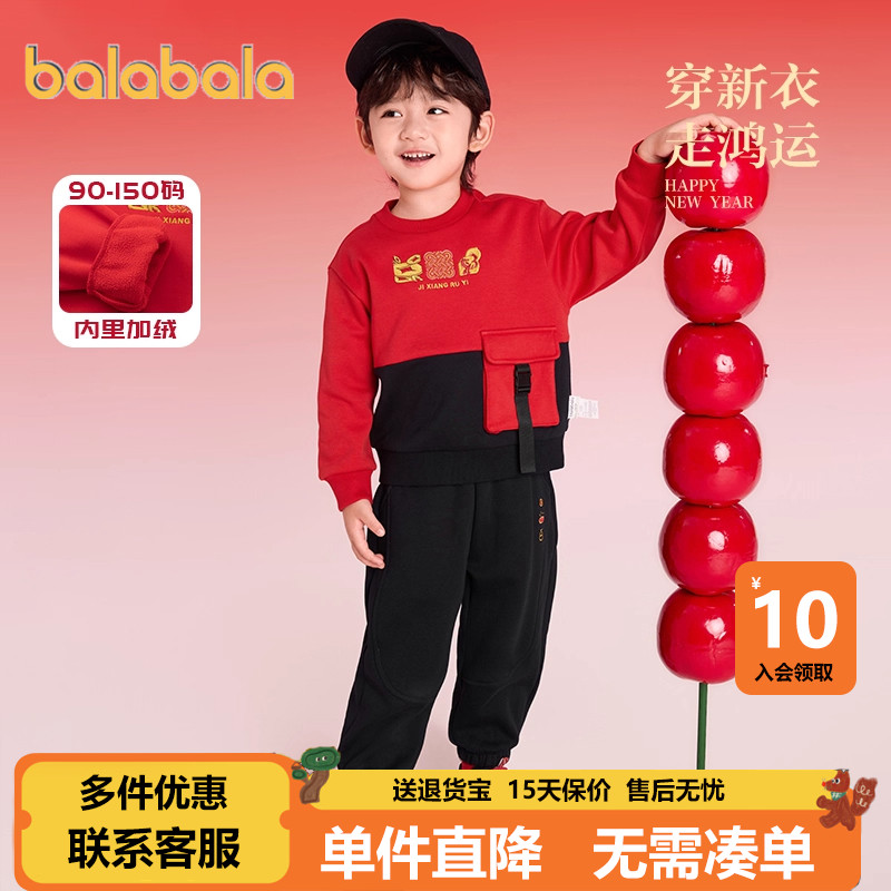 巴拉巴拉男童运动套装中大童加绒卫衣冬装2025新款童装儿童拜年服