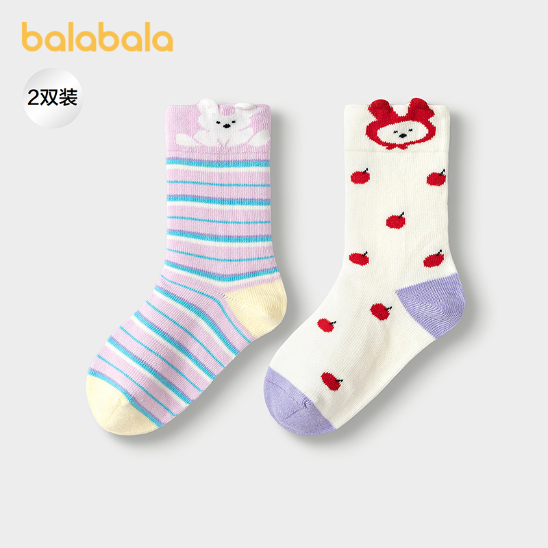 【商场同款】巴拉巴拉宝宝袜子冬季中筒袜婴幼儿萌趣袜提花两双装