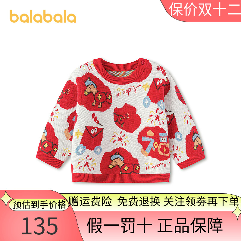 【商场同款】巴拉巴拉宝宝毛衣儿童针织衫男女童2025新款春装喜庆