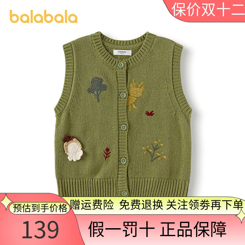 【商场同款】巴拉巴拉儿童马甲男宝宝针织衫秋冬2025新款绣花毛衣