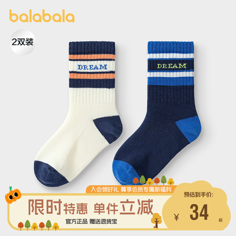 【商场同款】巴拉巴拉儿童袜子秋冬男童女童棉袜学生打底萌两双装
