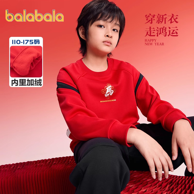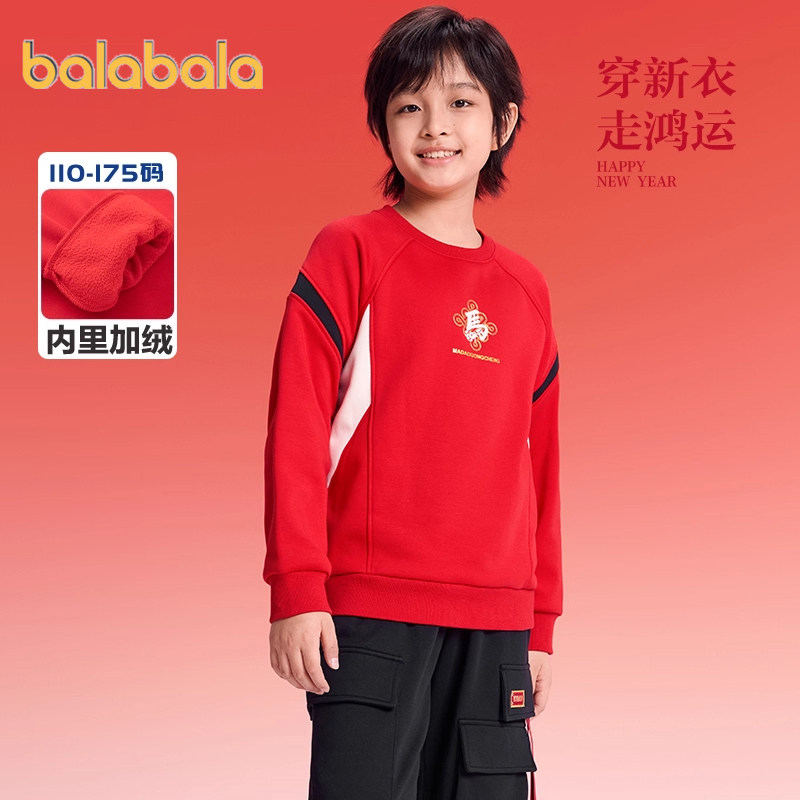 巴拉巴拉儿童加绒卫衣男童女童红色打底衫冬装2025新款童装上衣厚