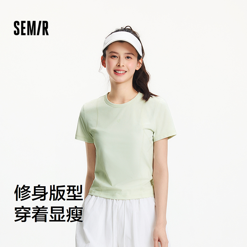 森马短袖T恤女短款修身吸湿速干防晒2025新款夏季分割上衣运动风