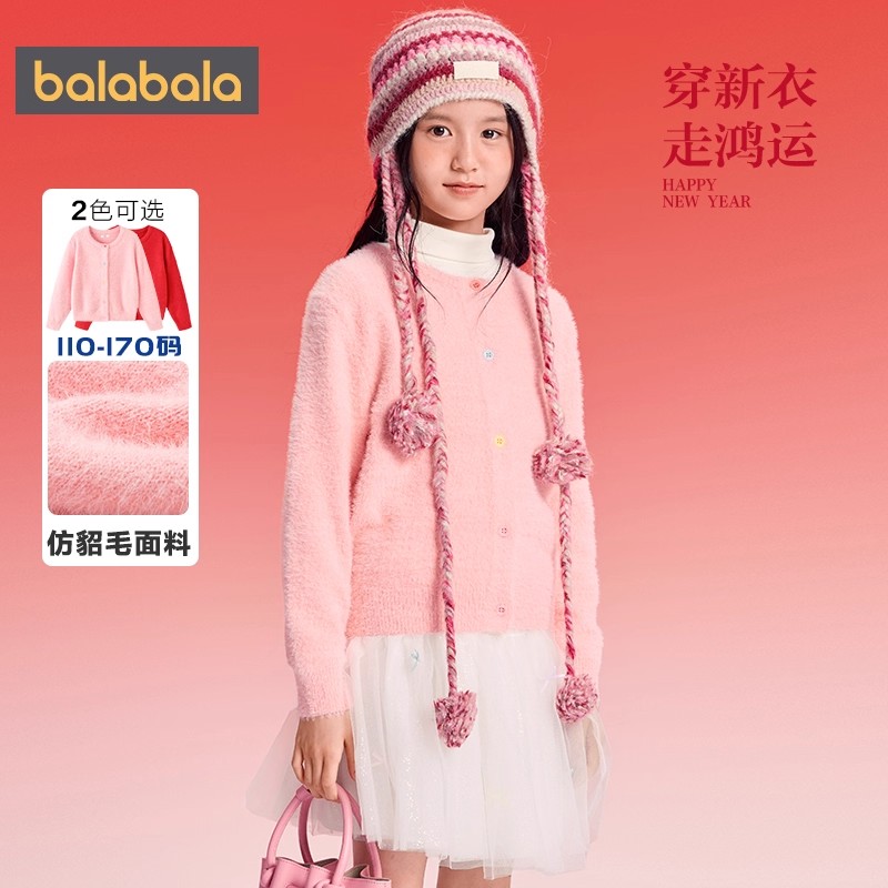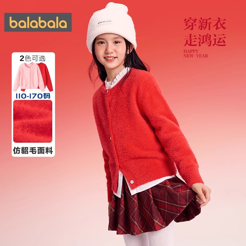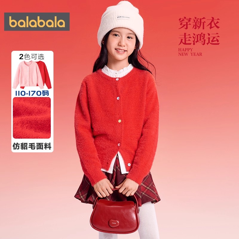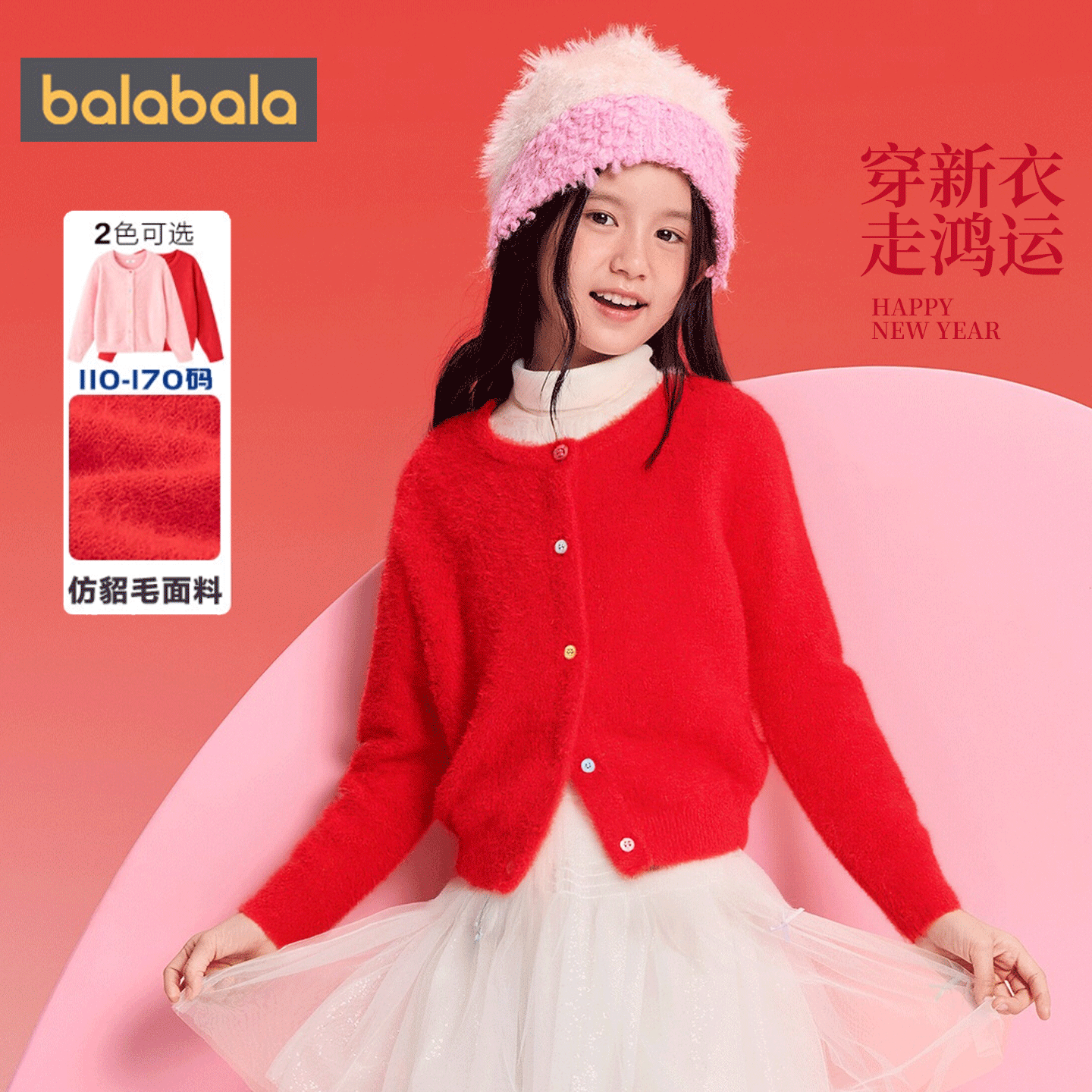 巴拉巴拉女童针织衫外套中大童开衫毛衣秋冬季新款宝宝红色拜年服