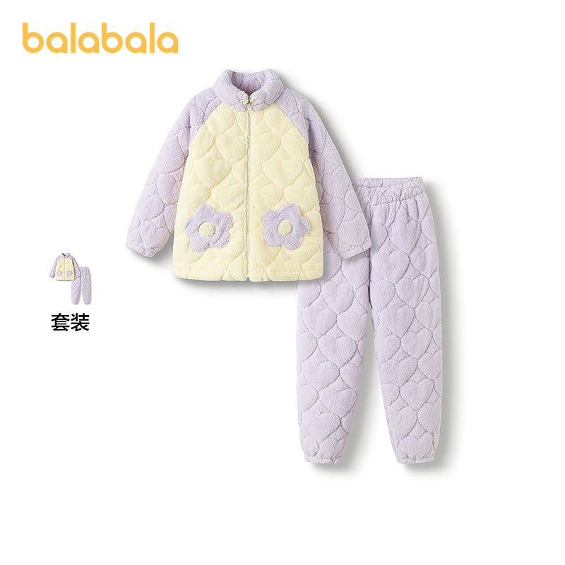 巴拉巴拉女童秋衣秋裤套装秋冬儿童保暖内衣暖绒睡衣拼色舒适亲肤