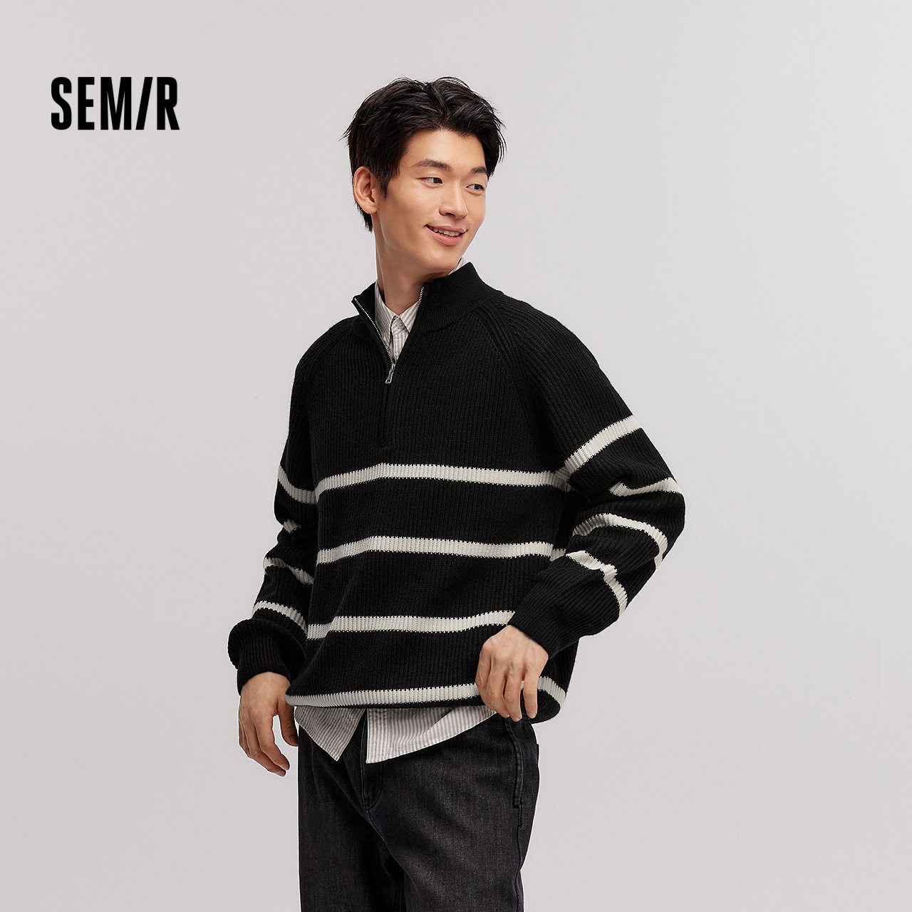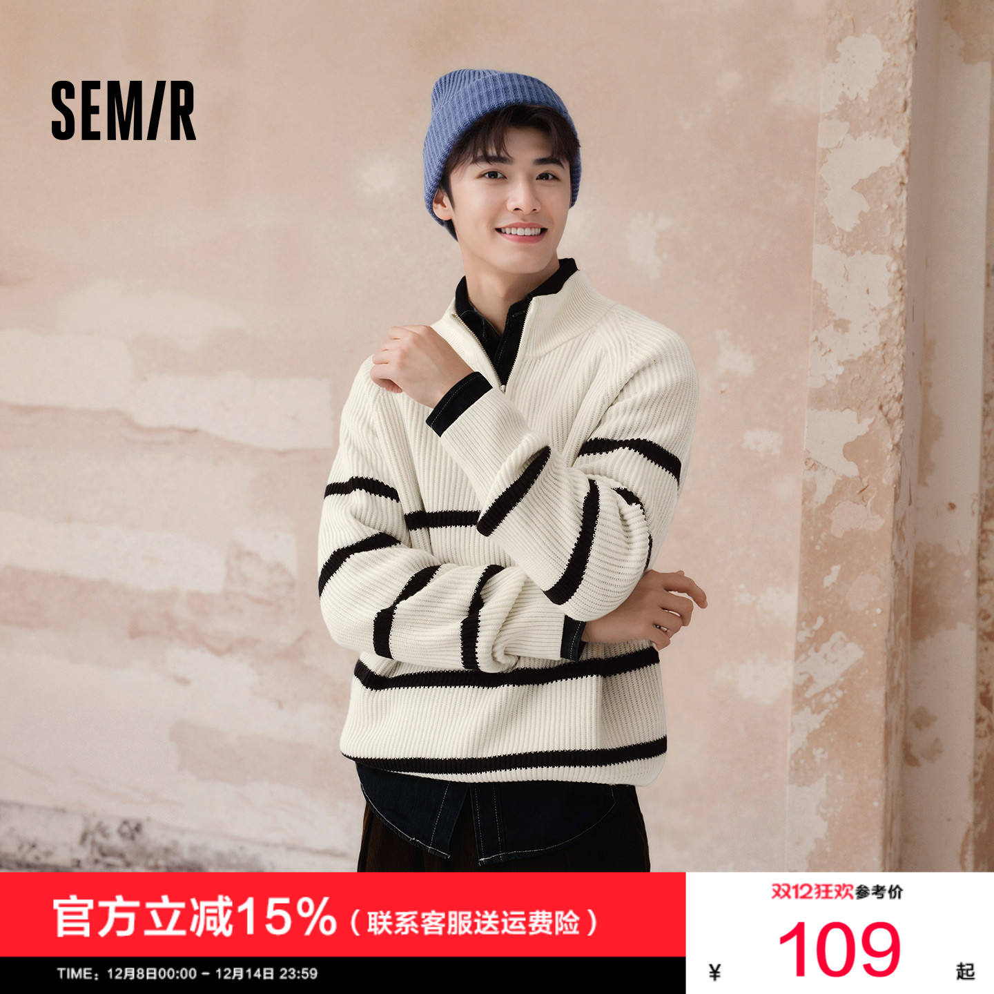 商场同款森马针织衫男2025冬新款情侣打底衫撞色条纹内搭套头衫潮