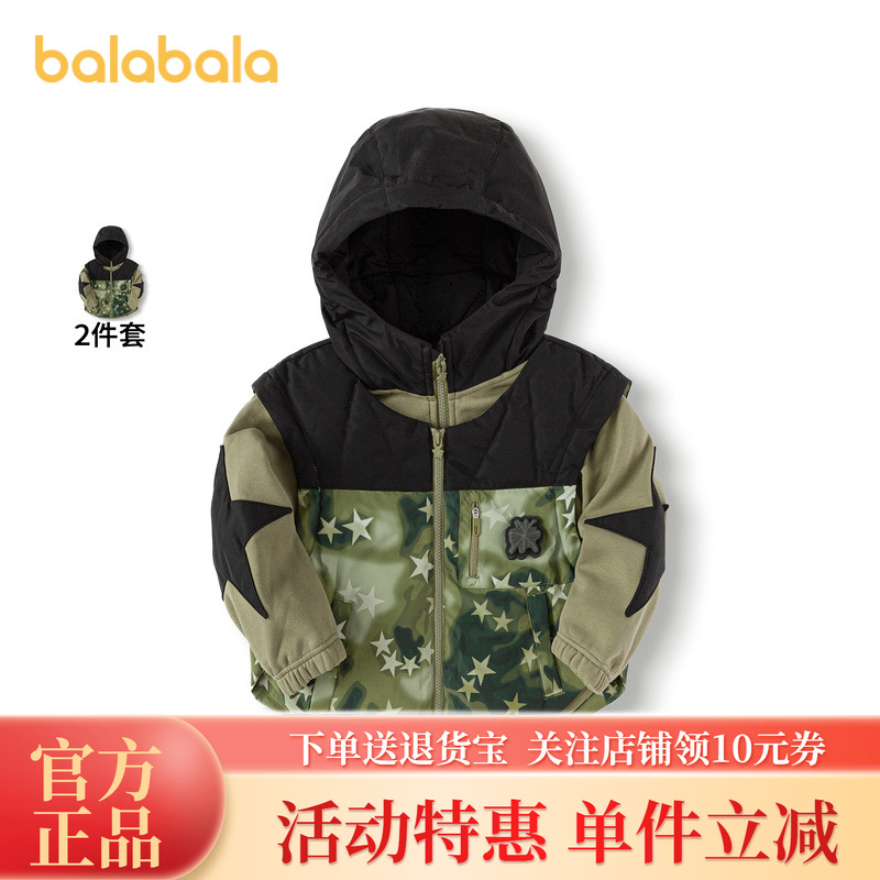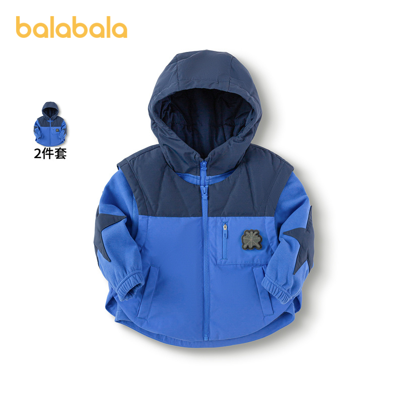 巴拉巴拉童装儿童羽绒服男童加绒连帽两件套冬季上衣时尚潮流户外