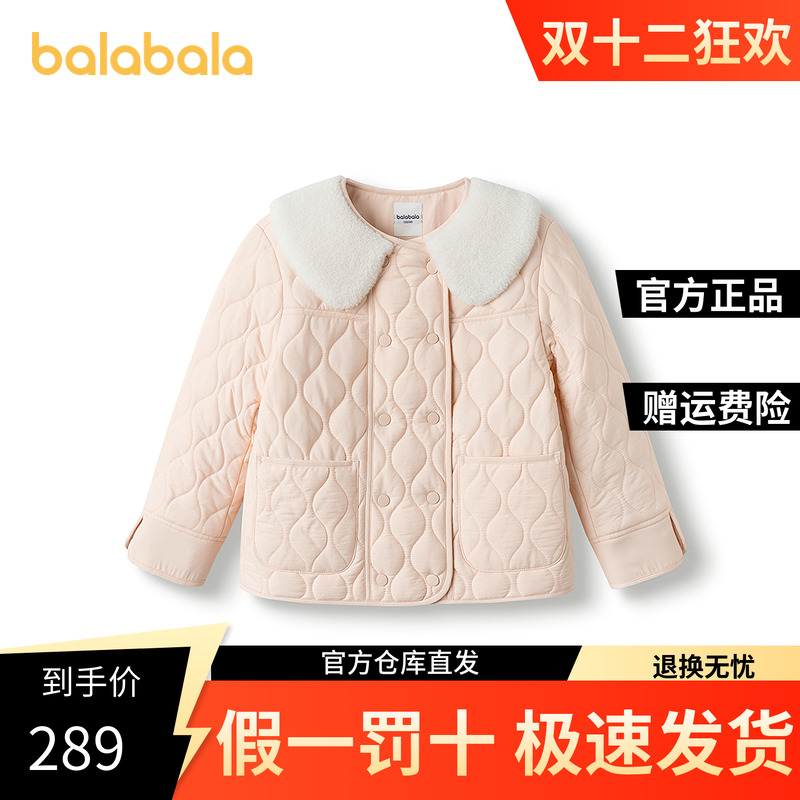 【商场同款】巴拉巴拉女童棉服儿童外套新款童装2025秋冬毛领拼接