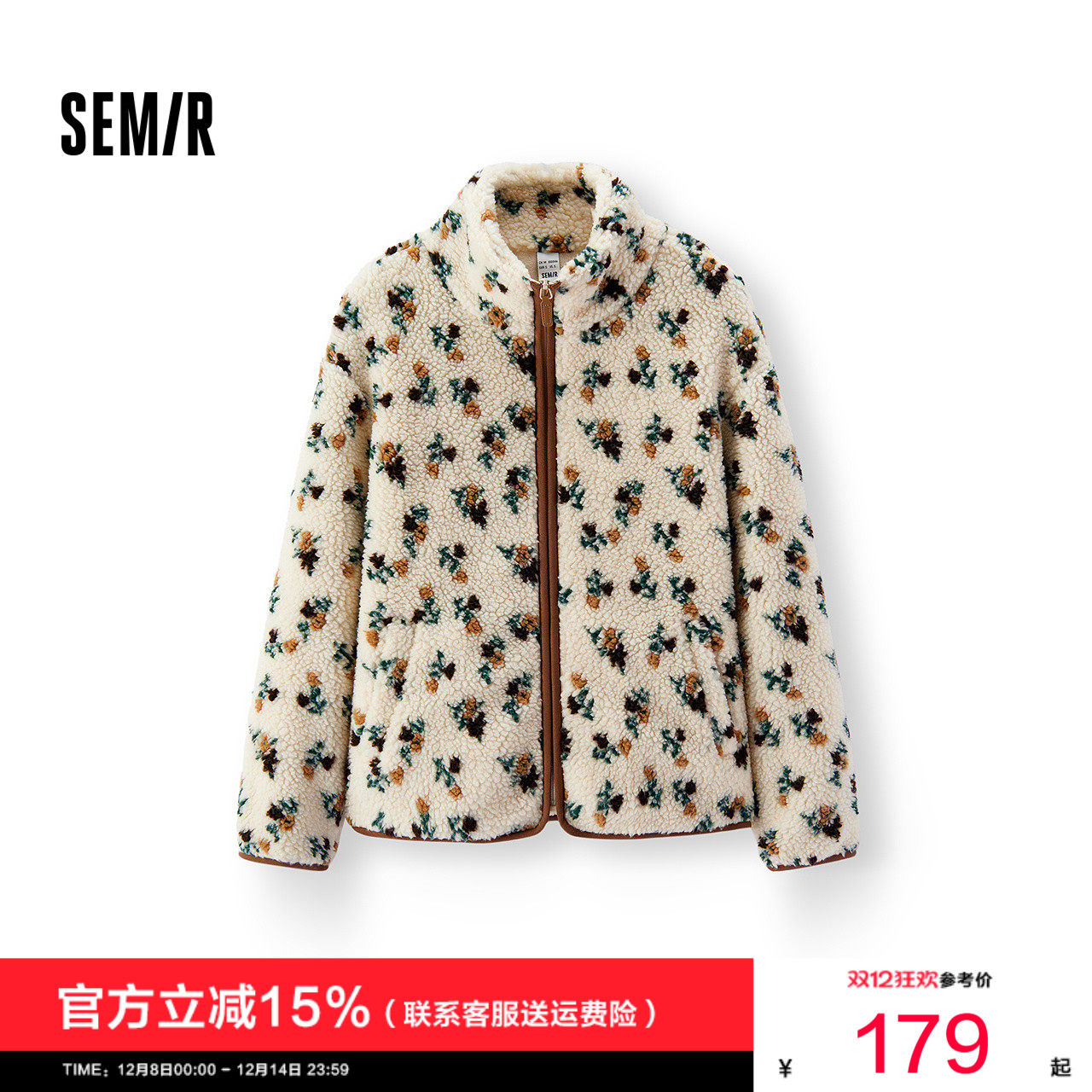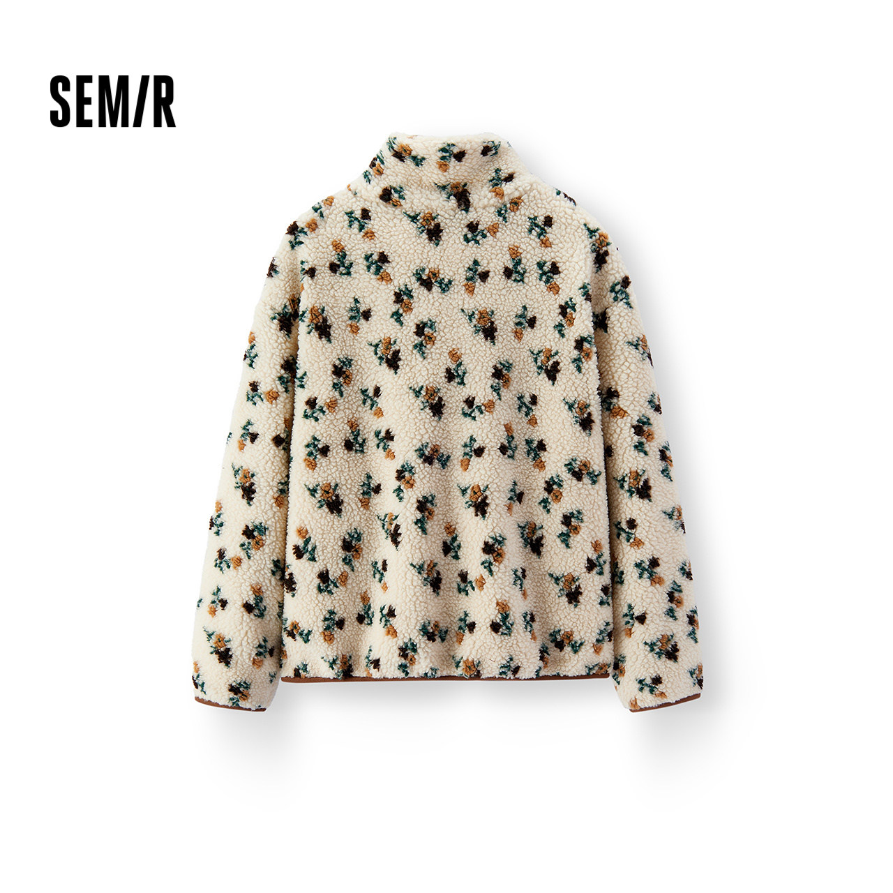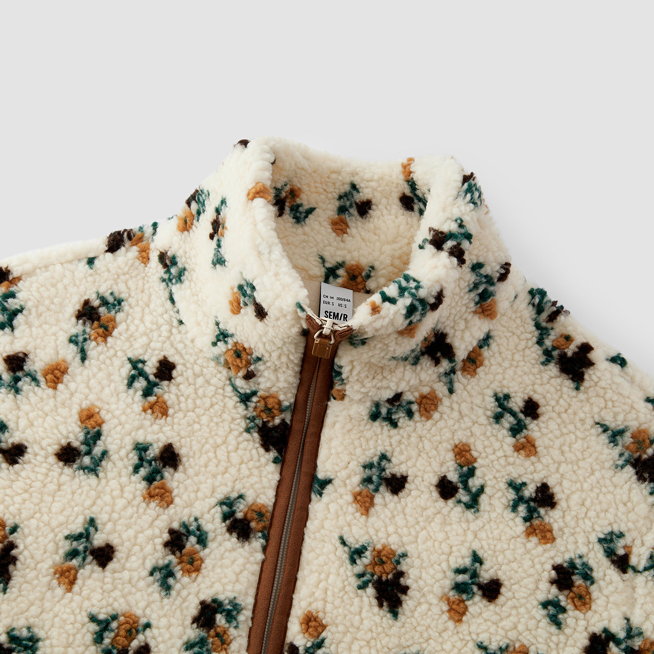 森马外套女冬季仿羊羔毛摇粒绒立领宽松图案2025新款时尚复古夹克