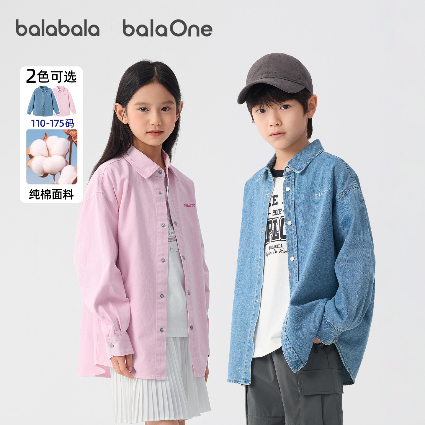 巴拉巴拉女童牛仔外套春秋2026新款儿童中大童长袖T恤男纯棉衬衫