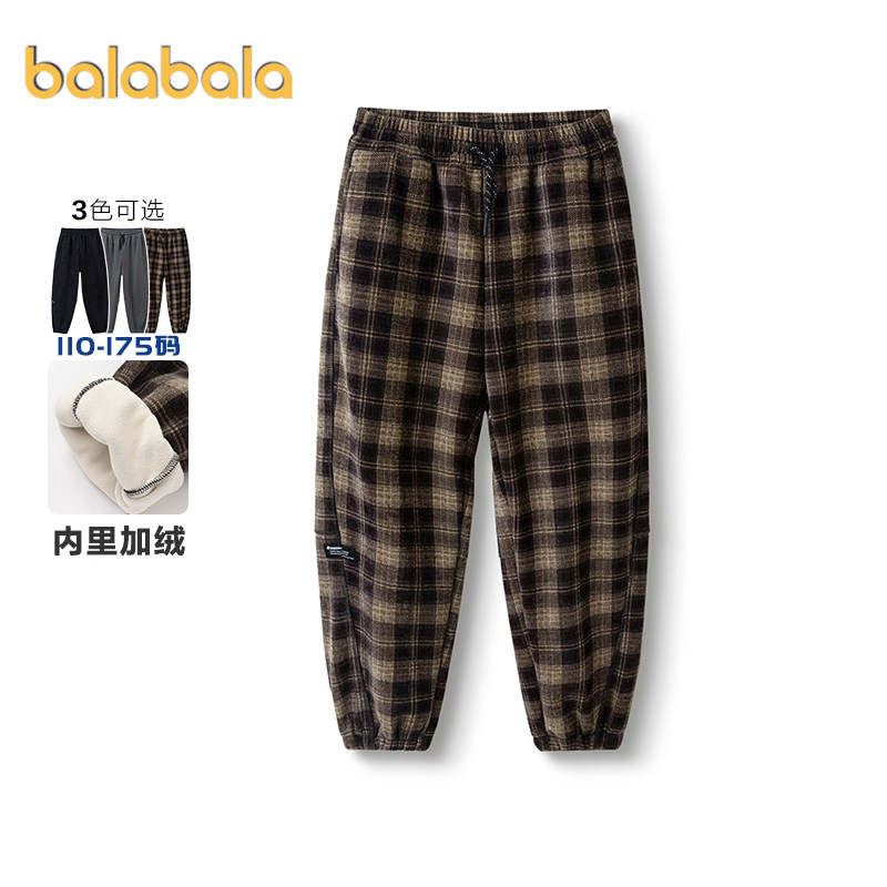 【商场同款】巴拉巴拉男童加绒裤子中大童运动裤秋冬款童装长裤厚