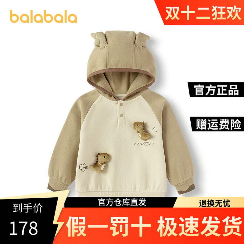 巴拉巴拉宝宝卫衣恐龙萌男童装秋冬2025新款连帽上衣