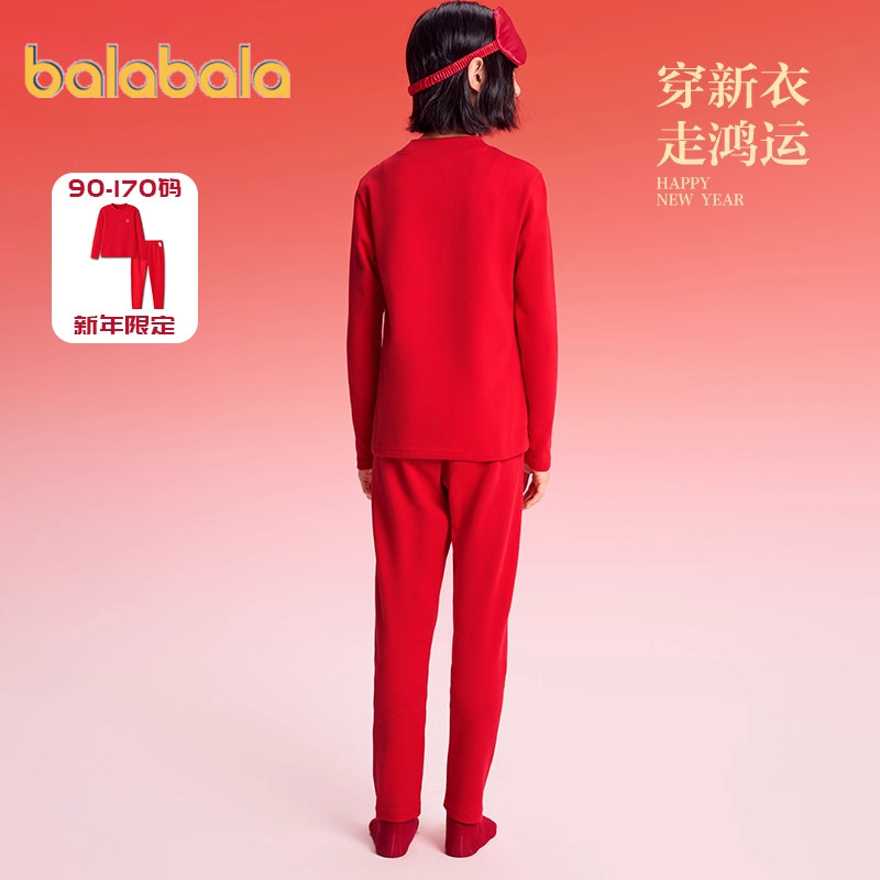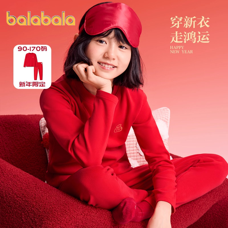 巴拉巴拉女童内衣套装中大童宝宝红色本命年睡衣秋冬款儿童秋衣裤